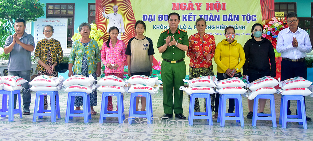 Tại ngày hội, Tỉnh uỷ - HĐND - UBND - Uỷ ban MTTQ Việt Nam tỉnh trao tặng 5 phần quà (1 triệu đồng/phần) cho các hộ có hoàn cảnh khó khăn. Phường Hiệp Thành hỗ trợ 2 căn nhà Đại đoàn kết (trị giá 60 triệu đồng/căn) cho hộ bà Sơn Thị Bó (khóm Giồng Giữa A) và hộ Võ Đại Nhân (khóm Biển Tây B). Ban Trị sự Quán Âm Phật Đài trao 4 tấn gạo giúp người dân nghèo vượt khó.