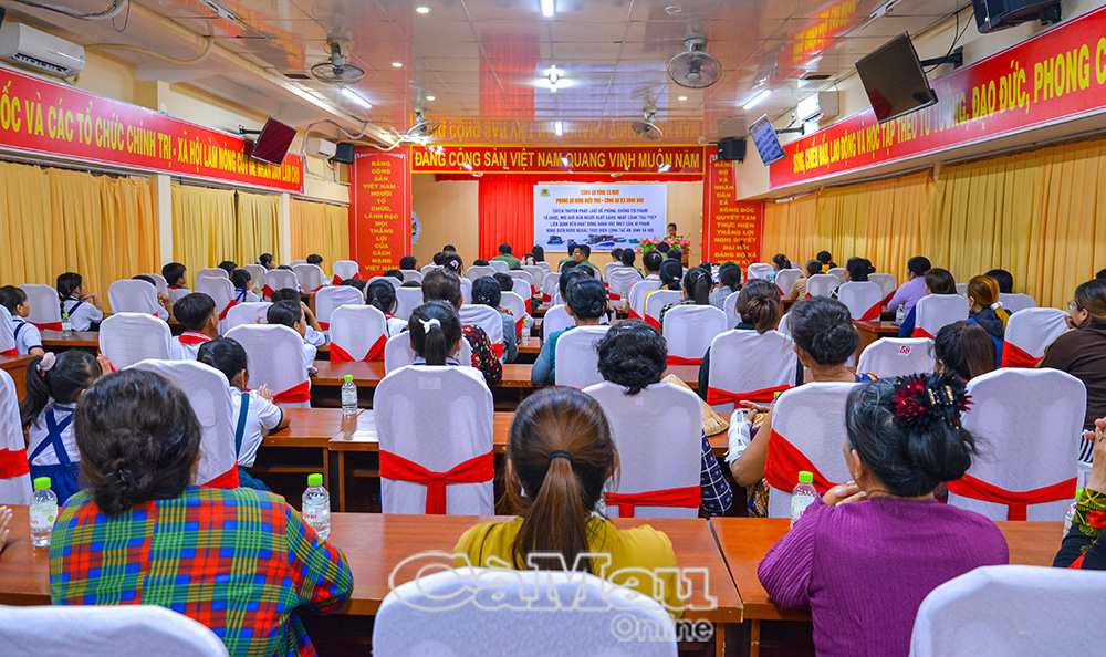 Công an tỉnh Cà Mau tổ chức tuyên truyền, phổ biến pháp luật về khai thác thuỷ sản cho người dân.