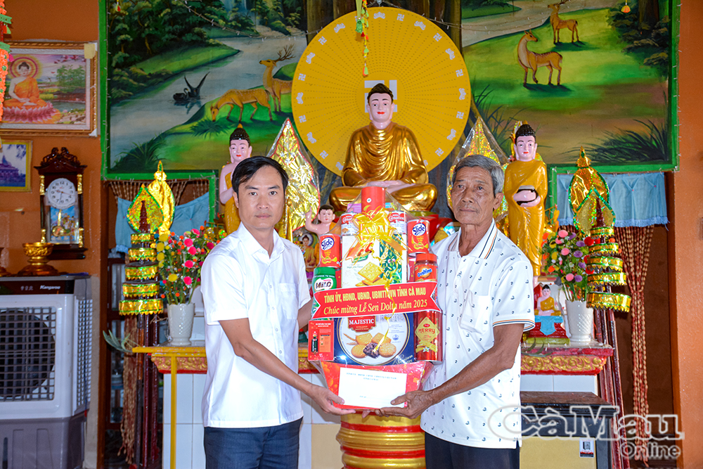 Ngày 20/9, đoàn công tác của Sở Dân tộc và Tôn giáo tỉnh Cà Mau do ông Lương Văn Pho, Phó Giám đốc Sở, làm trưởng đoàn đến thăm, tặng quà và chúc mừng đồng bào Khmer nhân dịp lễ Sene Dolta 2025.