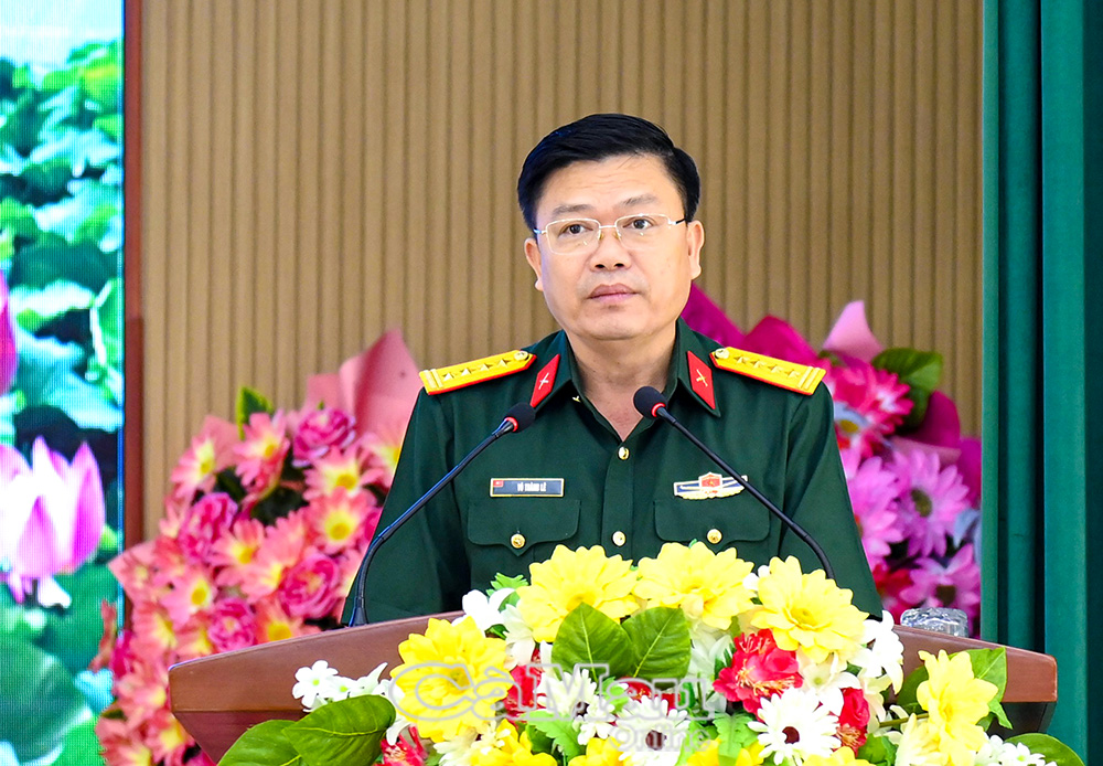Đại tá Võ Thành Lê, Chính uỷ Bộ CHQS tỉnh Cà Mau, phát biểu tại hội thi.