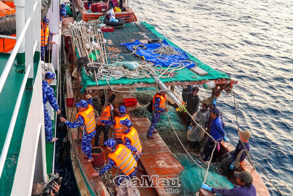 Bên cạnh kiểm tra công tác sẵn sàng chiến đấu, đấu tranh phòng, chống tội phạm, buôn lậu, gian lận thương mại, ma tuý và công tác chống khai thác IUU, đoàn công tác còn trực tiếp tuyên truyền cho ngư dân về chủ trương, chính sách của Đảng, pháp luật của Nhà nước liên quan đến hoạt động khai thác hải sản; nhiệm vụ phát triển kinh tế biển gắn với bảo đảm quốc phòng, an ninh và đối ngoại trên biển.