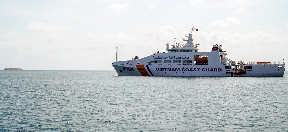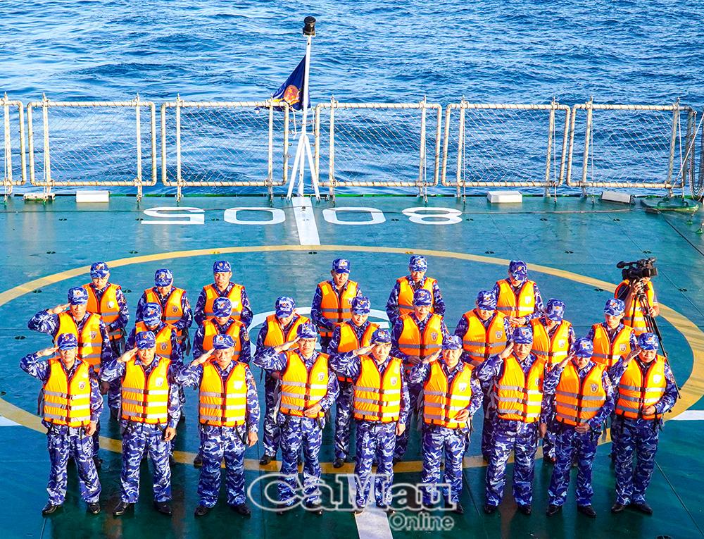 Tàu Cảnh sát biển 8005 chở Đoàn công tác thực hiện nhiệm vụ kiểm tra, chúc Tết trên tuyến biển giáp ranh Việt Nam - Thái Lan - Malaysia - Indonesia.