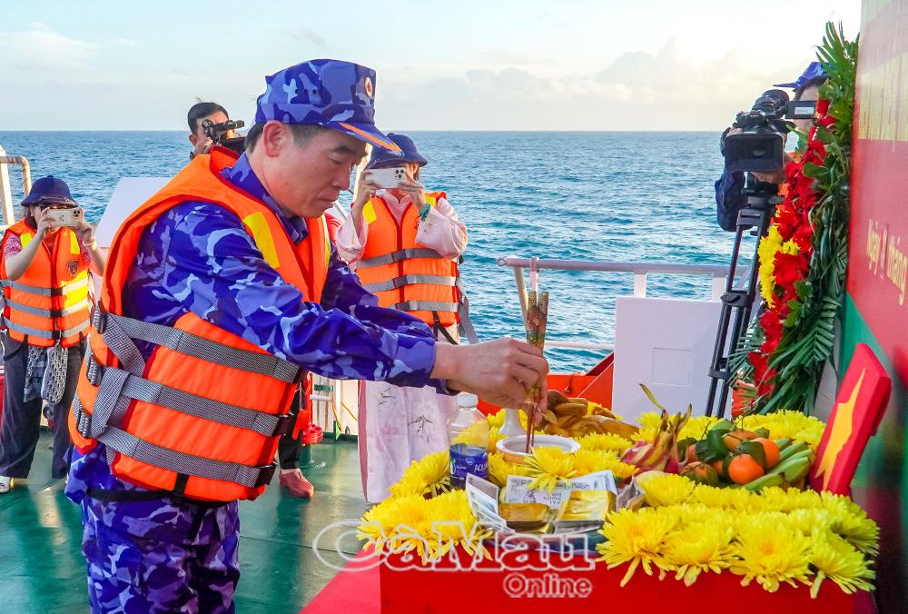 Trung tướng Bùi Quốc Oai, Chính uỷ Cảnh sát biển Việt Nam, dâng hương tưởng niệm các anh hùng liệt sĩ và đồng bào tử nạn trên vùng biển Tây Nam.