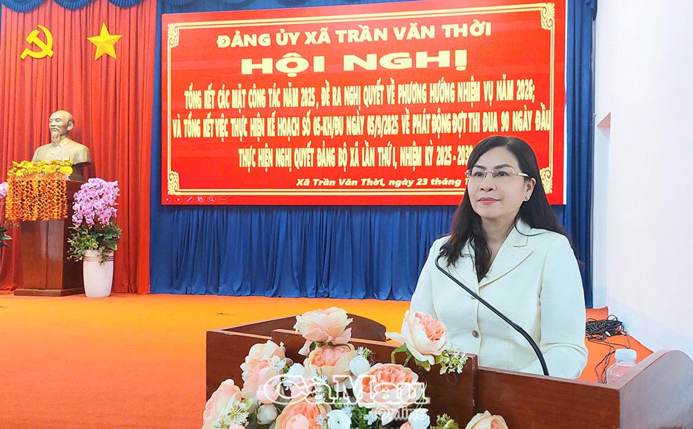 Ngày 23/12, Đảng uỷ Xã Trần Văn Thời tổ chức Hội nghị tổng kết công tác năm 2025, đề ra phương hướng, nhiệm vụ năm 2026 và tổng kết việc thực hiện Kế hoạch số 05 của Đảng uỷ về phát động đợt thi đua 90 ngày đầu thực hiện Nghị quyết Đại hội Đảng bộ xã lần thứ I, nhiệm kỳ 2025-2030.
