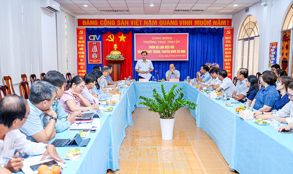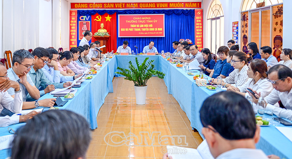 Thường trực Tỉnh uỷ làm việc với tập thể lãnh đạo Báo và PTTH Cà Mau vào chiều 24/2.