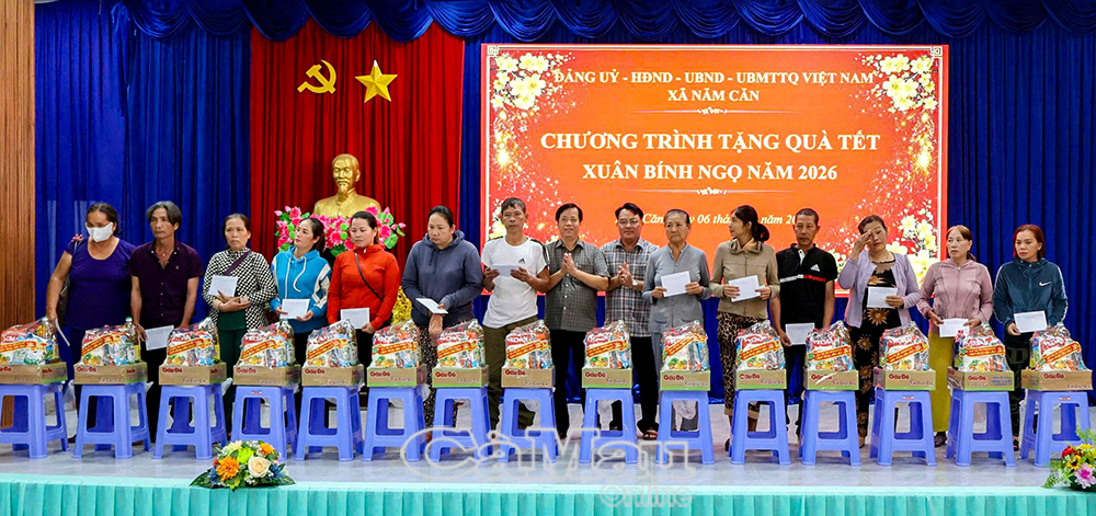 Theo đó, Ban Tổ chức trao 175 suất quà Tết, mỗi suất trị giá 1 triệu đồng, gồm tiền mặt và nhu yếu phẩm. Trong đó, Tỉnh uỷ - HĐND - UBND - Uỷ ban MTTQ Việt Nam tỉnh Cà Mau hỗ trợ 100 suất; còn lại do xã Năm Căn vận động từ các doanh nghiệp, mạnh thường quân và nhà tài trợ trên địa bàn.
