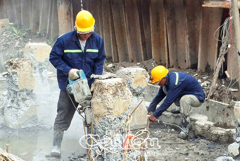 Tại công trường, công nhân đang khẩn trương trong từng khâu, hạng mục.