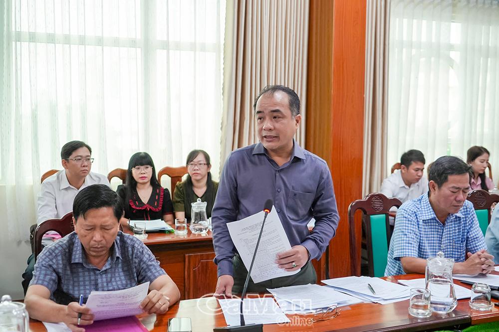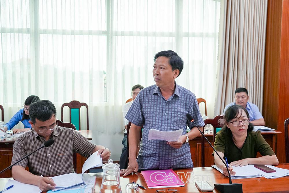 Ông Trương Văn Phương, Phó Chi cục trưởng Chi cục Thuỷ lợi tỉnh, đóng góp ý kiến đối với dự thảo Nghị quyết quy định mức hỗ trợ một phần chi phí sản xuất ban đầu nhằm khôi phục sản xuất nông nghiệp tại các vùng bị thiệt hại do thiên tai, dịch hại thực vật trên địa bàn tỉnh Cà Mau.
