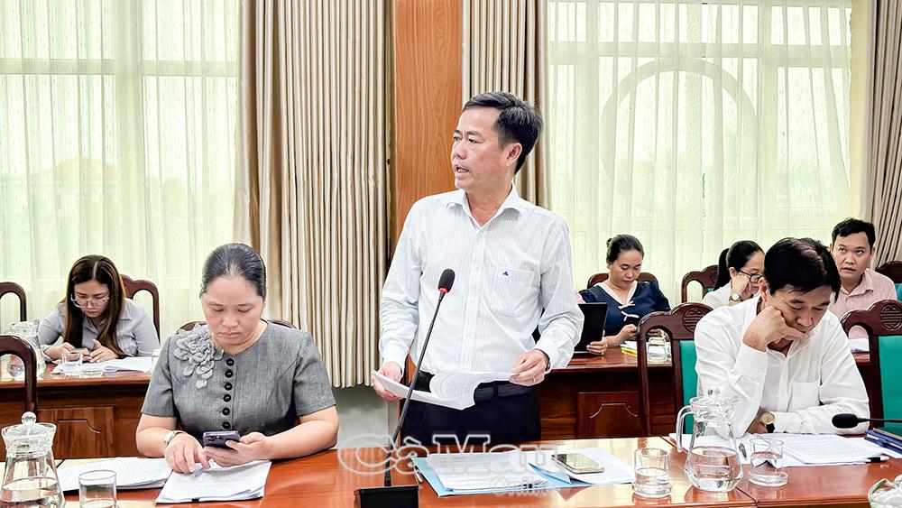 Ông Mã Tấn Cọp, Phó Giám đốc Sở Tài chính, đóng góp ý kiến vào các dự thảo nghị quyết tại hội nghị.