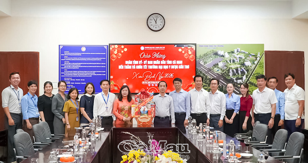 Tại Trường Đại học Y dược Cần Thơ và Học viện Chính trị khu vực IV, đồng chí Hồ Thanh Thuỷ gửi lời chúc mừng năm mới an khang, thịnh vượng đến đội ngũ cán bộ, giảng viên, viên chức, người lao động; đồng thời bày tỏ sự trân trọng, cảm ơn sâu sắc trước những đóng góp quan trọng của các cơ sở đào tạo trong việc cung cấp nguồn nhân lực y tế, cán bộ chất lượng cao cho khu vực đồng bằng sông Cửu Long, trong đó có tỉnh Cà Mau. Đồng chí mong muốn thời gian tới, các đơn vị tiếp tục quan tâm, phối hợp, tạo điều kiện thuận lợi để con em Cà Mau học tập, nghiên cứu, đóng góp thiết thực cho sự phát triển của địa phương và vùng.