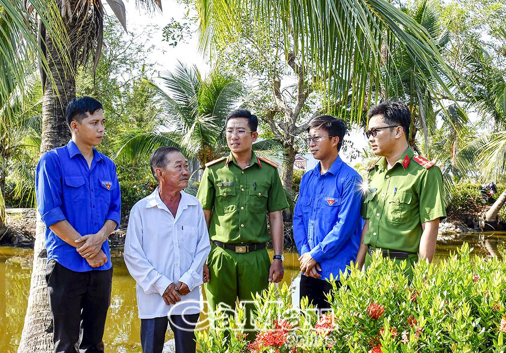 Các bạn đoàn viên, thanh niên quan tâm, thăm hỏi cựu chiến binh Nguyễn Văn Chanh.