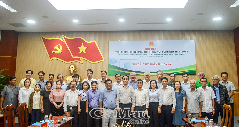 Đồng chí Lữ Quang Ngời, Phó Bí thư Tỉnh uỷ, Chủ tịch UBND tỉnh, chụp ảnh lưu niệm với các đại biểu tham dự hội nghị tại điểm cầu Cà Mau.