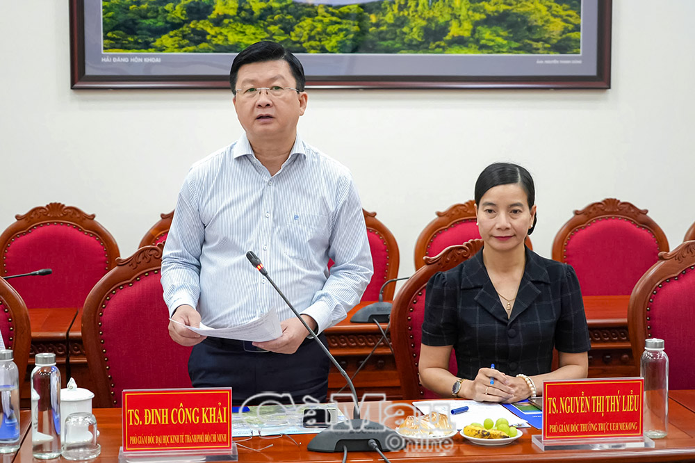 Tại buổi làm việc, Phó Chủ tịch UBND tỉnh Nguyễn Minh Luân nhấn mạnh, trong bối cảnh Cà Mau chuyển đổi mô hình phát triển theo hướng hiện đại, bền vững, sự đồng hành của UEH sẽ là nguồn lực quan trọng hỗ trợ địa phương hoạch định chiến lược dài hạn. Phó Chủ tịch UBND tỉnh đề xuất các nội dung trọng tâm hợp tác, gồm: nâng cao năng lực cho cán bộ cơ sở, bồi dưỡng kỹ năng quản lý - điều hành theo mô hình chính quyền hai cấp; rà soát, tối ưu hoá không gian phát triển kinh tế - xã hội gắn với chiến lược logistics; phát triển các mô hình tăng trưởng mới dựa trên lợi thế so sánh, đổi mới sáng tạo và chuyển đổi số.