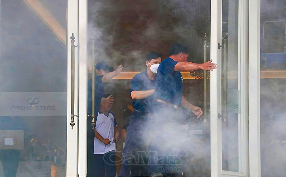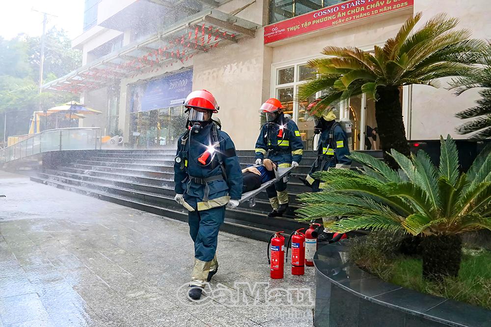 Theo tình huống giả định, khoảng 13 giờ 30, một đám cháy bất ngờ bùng phát tại khu vực nhà kho tầng trệt của khách sạn Cosmo Stars Bạc Liêu. Ngay khi phát hiện, nhân viên khách sạn nhanh chóng hô hoán, báo động và triển khai các biện pháp ứng phó ban đầu. Đội PCCC&CNCH cơ sở kịp thời có mặt, cắt điện khu vực cháy để đảm bảo an toàn, hướng dẫn khách và nhân viên di chuyển ra nơi an toàn, tổ chức cứu người bị nạn, sử dụng phương tiện chữa cháy tại chỗ để khống chế, chống cháy lan và di chuyển tài sản ra khỏi khu vực nguy hiểm.