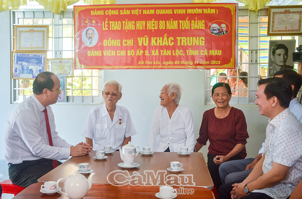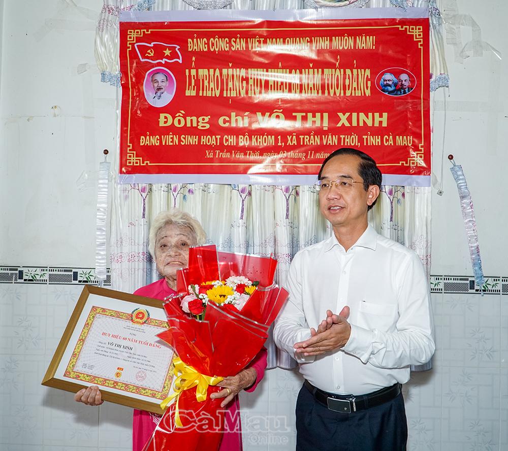 Tại xã Trần Văn Thời, đoàn đã trao Huy hiệu 65 năm tuổi Đảng cho đảng viên Bùi Thị Thiêu (sinh năm 1940, sinh hoạt tại Chi bộ Khóm 1); Huy hiệu 60 năm tuổi Đảng cho đảng viên Võ Thị Xinh (sinh năm 1944, Chi bộ Khóm 1); và đảng viên Nguyễn Văn Dũng (sinh năm 1938, sinh hoạt Chi bộ ấp Mũi Tràm B, xã Đá Bạc).