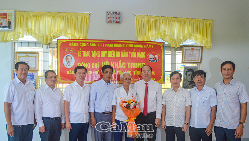 Đợt 7/11/2025, Ban Thường vụ Tỉnh uỷ Cà Mau trao tặng Huy hiệu Đảng cho 371 đảng viên và truy tặng Huy hiệu Đảng cho 7 đảng viên. Huy hiệu Đảng là phần thưởng cao quý của Đảng nhằm ghi nhận, tôn vinh những đảng viên có quá trình cống hiến, lập nhiều thành tích trong sự nghiệp đấu tranh giải phóng dân tộc, xây dựng và bảo vệ Tổ quốc; luôn giữ vững bản lĩnh chính trị, gương mẫu trong lối sống, hoàn thành xuất sắc nhiệm vụ của người đảng viên.