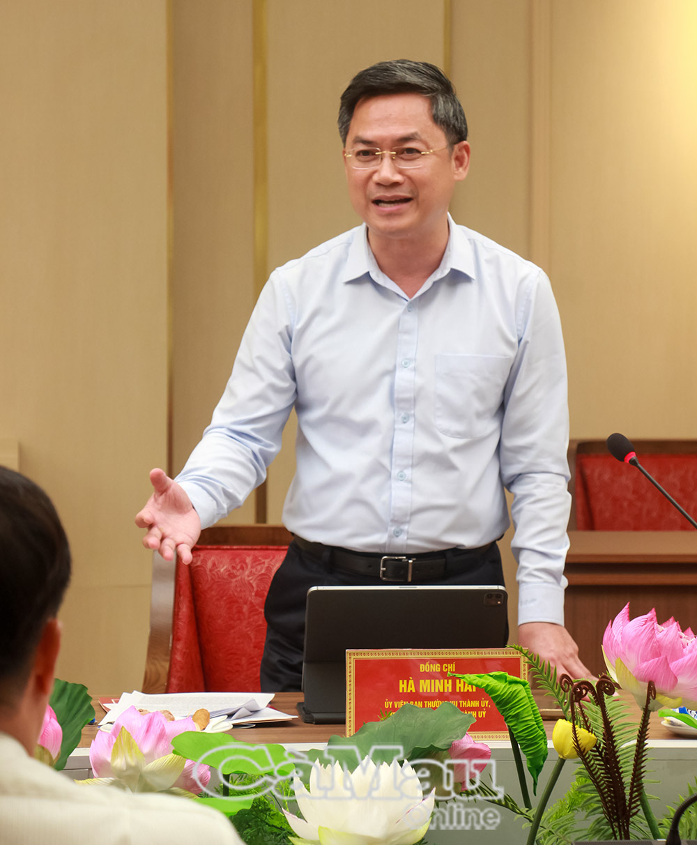 Phó Bí thư Thường trực Thành uỷ Hà Nội Nguyễn Văn Phong và Bí thư Tỉnh uỷ Cà Mau Nguyễn Hồ Hải đồng chủ trì hội nghị. Tham dự còn có các đồng chí Uỷ viên Ban Thường vụ Thành uỷ Hà Nội, lãnh đạo các sở, ngành, Văn phòng Thành uỷ.