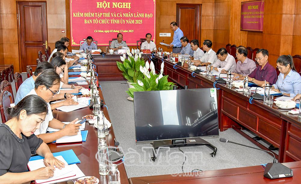 Chiều 2/12, Ban Tổ chức Tỉnh uỷ Cà Mau tổ chức Hội nghị kiểm điểm tập thể và cá nhân lãnh đạo Ban năm 2025.