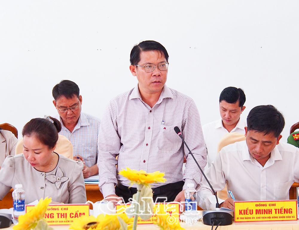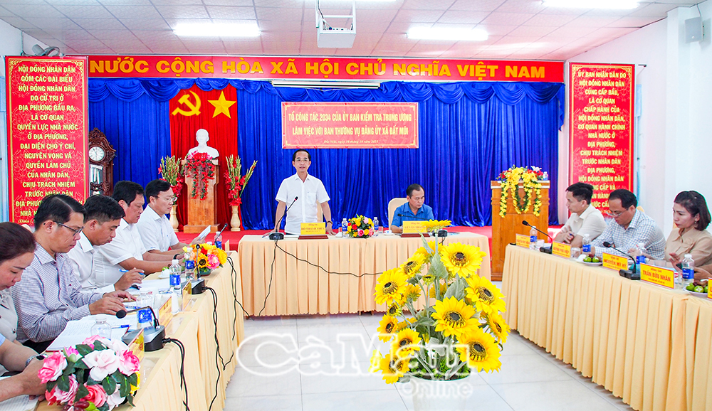 Tham dự buổi làm việc có đồng chí Hồ Thanh Thuỷ, Phó Bí thư Tỉnh uỷ; đồng chí Lâm Văn Bi, Uỷ viên Ban Thường vụ Tỉnh uỷ, Phó Chủ tịch UBND tỉnh; đồng chí Huỳnh Hữu Trí, Uỷ viên Ban Thường vụ Tỉnh uỷ, Chủ nhiệm Uỷ ban Kiểm tra Tỉnh uỷ; cùng đại diện lãnh đạo Vụ Địa bàn VIII, các sở, ngành tỉnh và xã Đất Mũi.