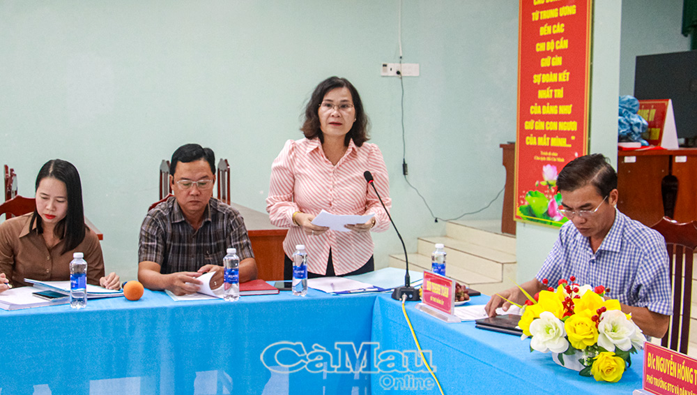Đồng chí Nguyễn Hồng Thắm, Phó Trưởng Ban Tuyên giáo và Dân vận Tỉnh uỷ, triển khai nội dung kiểm tra với Đảng uỷ xã Khánh Hưng.
