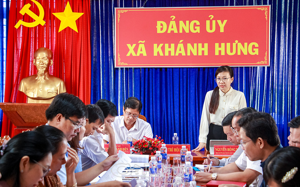 Đồng chí Nguyễn Chí Tâm, Trưởng Ban Xây dựng Đảng thông qua Báo cáo số 112-BC/ĐU của Đảng uỷ xã Khánh Hưng về kết quả triển khai quán triệt, tuyên truyền và cụ thể hoá các nghị quyết quan trọng của Bộ Chính trị.