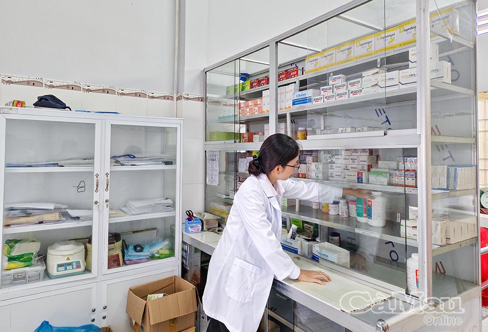 Trạm Y tế Tân Lộc hiện còn khó khăn về cơ sở vật chất, máy móc, trang thiết bị y tế. (Ảnh: Tủ thuốc tại điểm chính Trạm Y tế xã Tân Lộc).