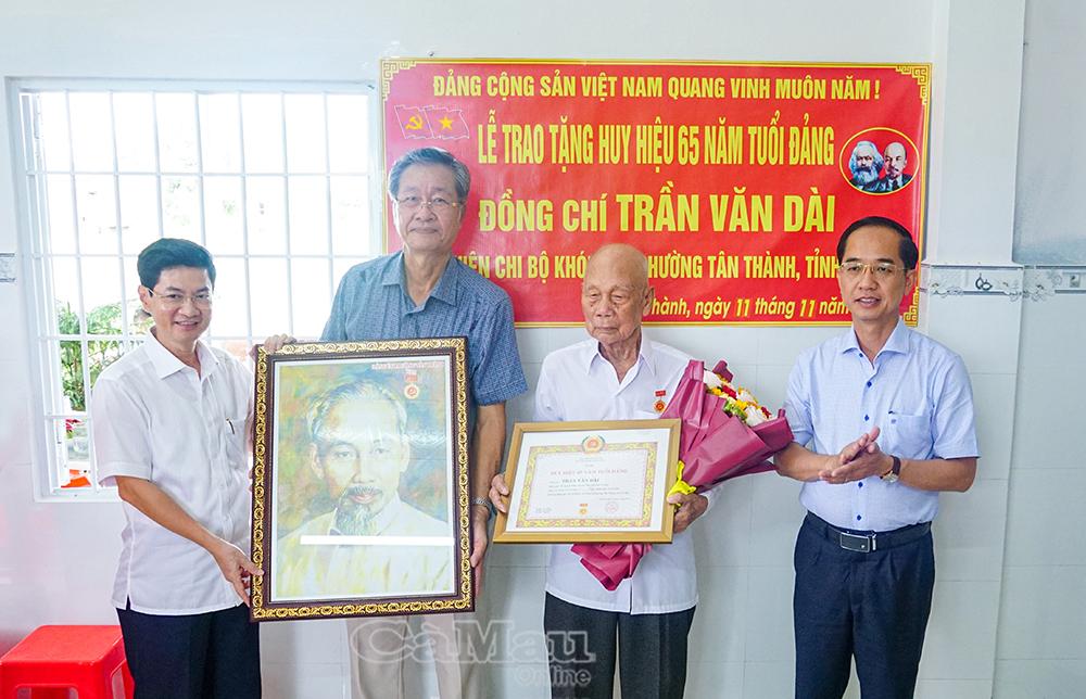 Chiều 11/11, đồng chí Hồ Thanh Thuỷ, Phó Bí thư Tỉnh uỷ đã đến trao Huy hiệu 65 năm tuổi Đảng cho đồng chí Trần Văn Dài, đang sinh hoạt tại Chi bộ Khóm 18, Đảng bộ phường Tân Thành, hiện cư trú tại ấp Láng Dài, xã Quách Phẩm.