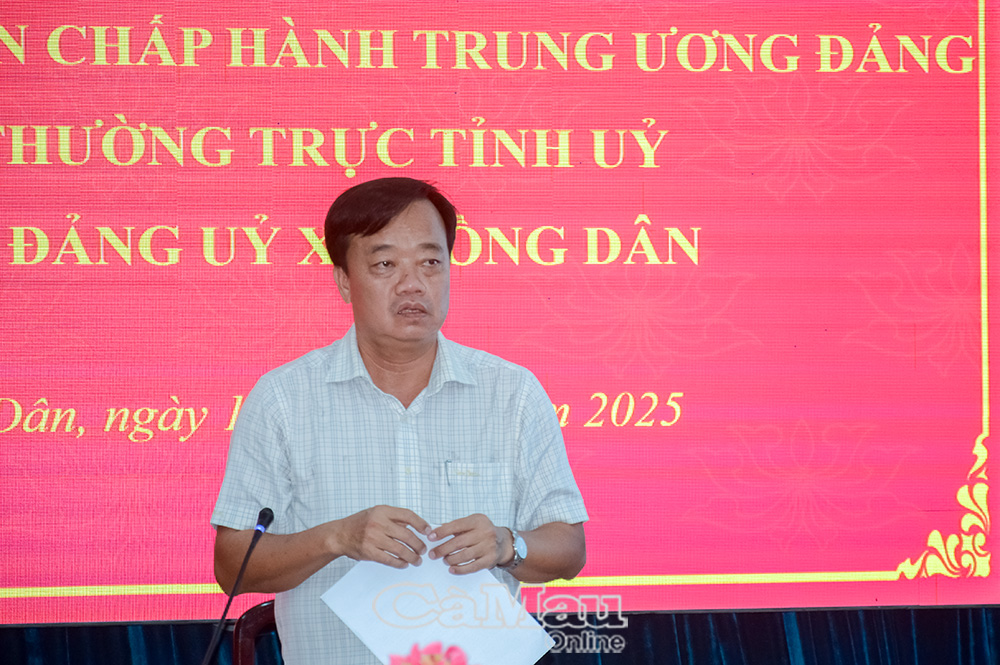 Phát biểu chỉ đạo, đồng chí Huỳnh Quốc Việt, Uỷ viên Dự khuyết Ban Chấp hành Trung ương Đảng, Phó Bí thư Thường trực Tỉnh uỷ, đánh giá cao công tác triển khai thực hiện nghị quyết của xã Hồng Dân; ghi nhận tinh thần vượt qua khó khăn ban đầu, nhanh chóng thích ứng với tình hình mới của địa phương.