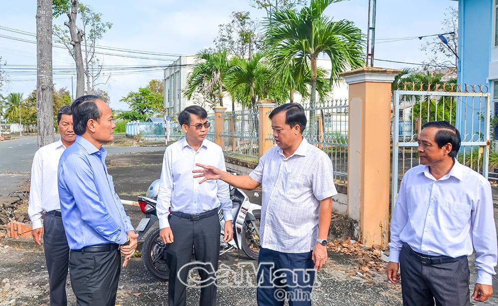 Đồng chí Huỳnh Quốc Việt cùng đoàn công tác khảo sát địa điểm dự kiến di dời Trung tâm Phục vụ hành chính công xã.