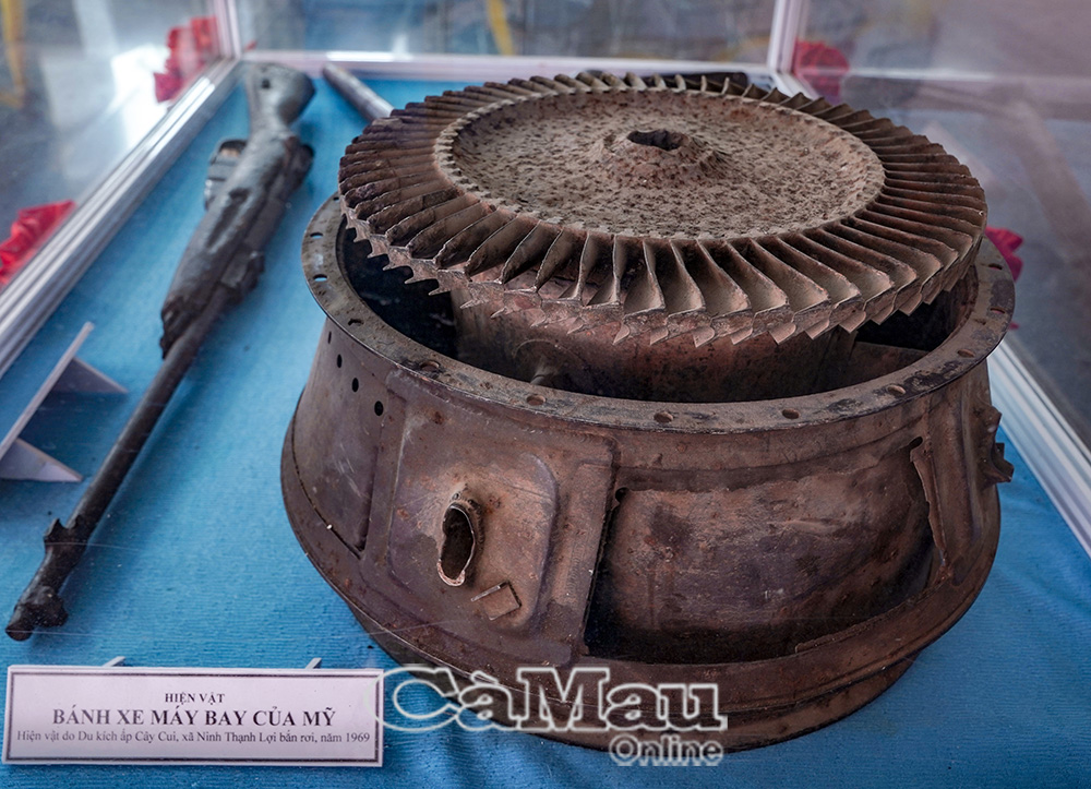 Bánh xe máy bay Mỹ, hiện vật do du kích ấp Cái Cui, xã Ninh Thạnh Lợi bắn rơi năm 1969.
