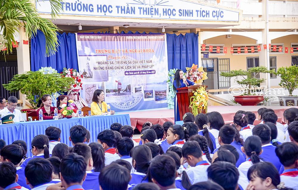 Hơn 700 học sinh Trường THCS Nguyễn Huệ tham quan, nghe thuyết minh về các tư liệu, bản đồ khẳng định chủ quyền của Việt Nam đối với hai quần đảo Hoàng Sa và Trường Sa.