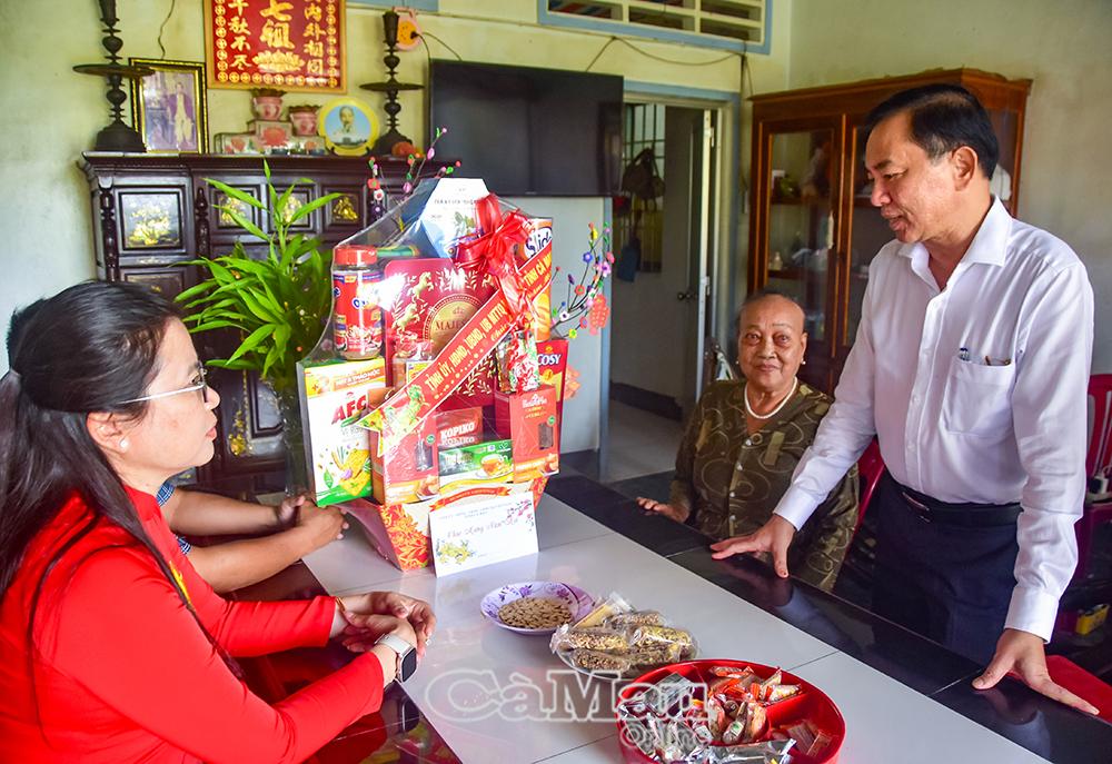 Trưởng Ban Tổ chức Tỉnh uỷ Phan Thanh Duy tặng quà Tết của Tỉnh uỷ - HĐND - UBND - Uỷ ban MTTQ Việt Nam tỉnh Cà Mau đến gia đình ông Phạm Văn Tư.