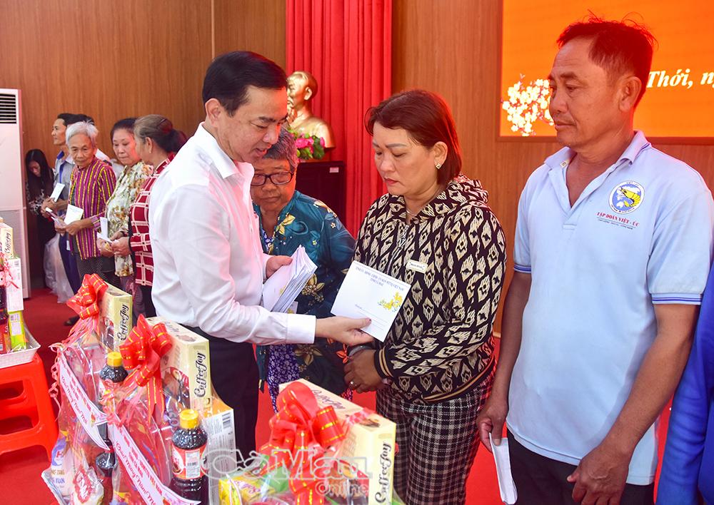 Trưởng Ban Tổ chức Tỉnh uỷ Phan Thanh Duy trao quà Tết tại xã Châu Thới