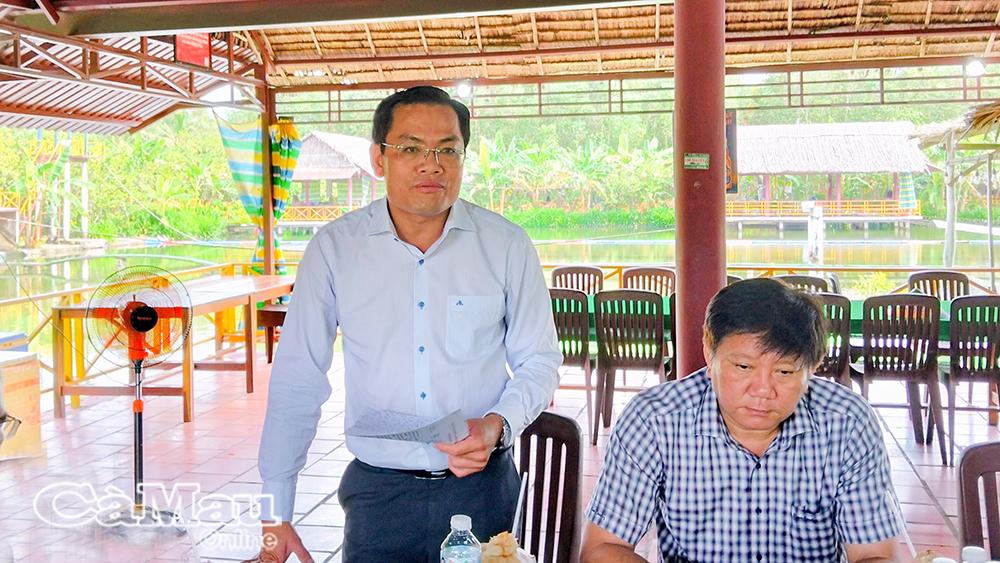 Đồng chí Lữ Văn Hùng phát biểu tại buổi khảo sát Điểm du lịch sinh thái Hương Tràm.