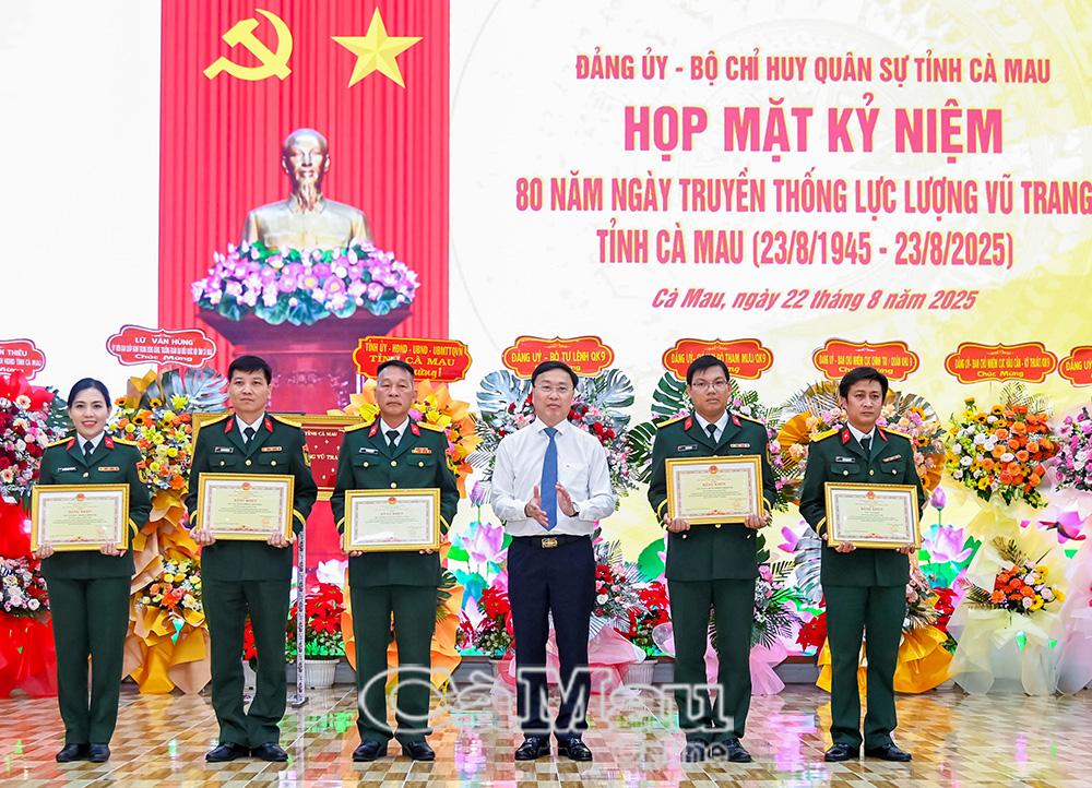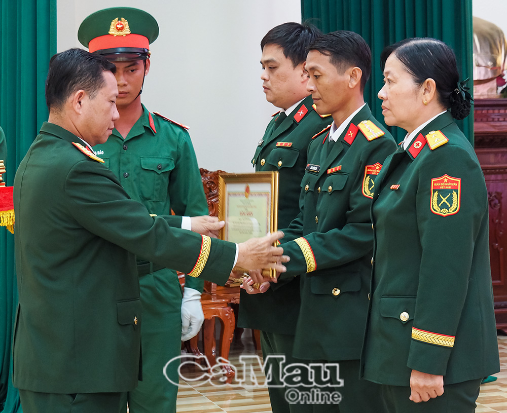 Dịp này, UBND tỉnh Cà Mau tặng Bằng khen cho 5 tập thể và 10 cá nhân; Bộ CHQS tỉnh khen thưởng cho 5 tập thể và 13 cá nhân có thành tích tiêu biểu, xuất sắc trong triển khai thực hiện nhiệm vụ quân sự, quốc phòng địa phương, góp phần xây dựng quê hương, đất nước ngày thêm giàu đẹp.