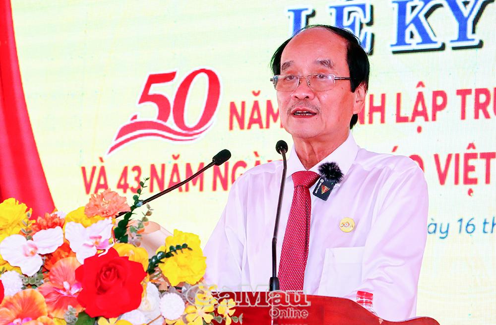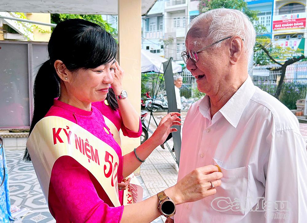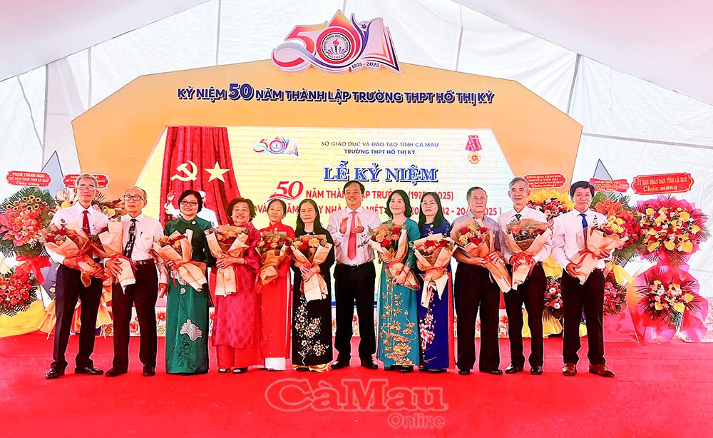 Đồng chí Huỳnh Quốc Việt, Uỷ viên dự khuyết Ban Chấp hành Trung ương Đảng, Phó Bí thư Thường trực Tỉnh uỷ, Chủ tịch Uỷ ban MTTQ Việt Nam tỉnh Cà Mau, tặng hoa tri ân cho các nguyên lãnh đạo Sở GD&ĐT và trường.