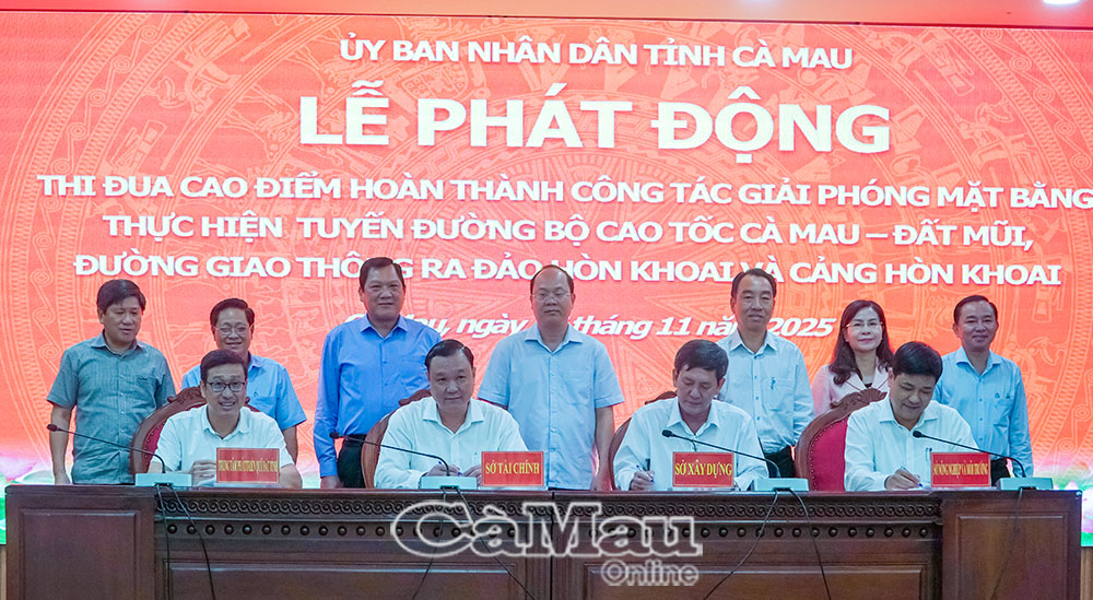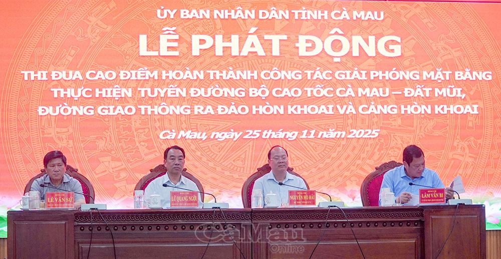 Nhằm tạo khí thế thi đua trong thực hiện nhiệm vụ giải phóng mặt bằng, tại hội nghị, UBND tỉnh tổ chức lễ phát động thi đua cao điểm hoàn thành công tác giải phóng mặt bằng thực hiện tuyến đường bộ cao tốc Cà Mau - Đất Mũi, tuyến giao thông ra đảo Hòn Khoai và Cảng lưỡng dụng Hòn Khoai.
