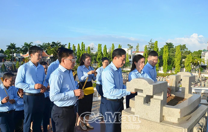 Đoàn cán bộ VietinBank Cà Mau thắp hương tri ân các liệt sĩ tại Nghĩa trang liệt sĩ tỉnh.