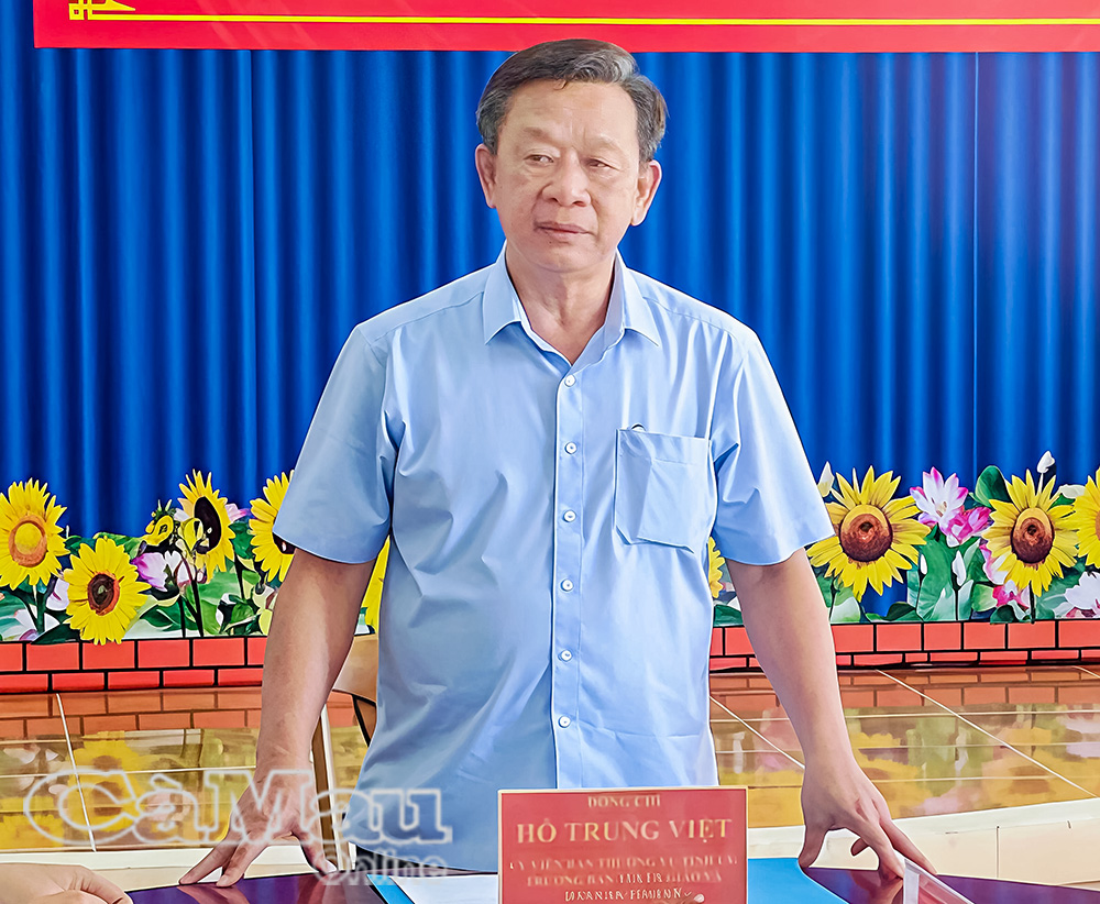 Đồng chí Hồ Trung Việt - Uỷ viên Ban Thường vụ Tỉnh uỷ, Trưởng Ban Tuyên giáo và Dân vận Tỉnh uỷ Cà Mau phát biểu tại buổi làm việc.