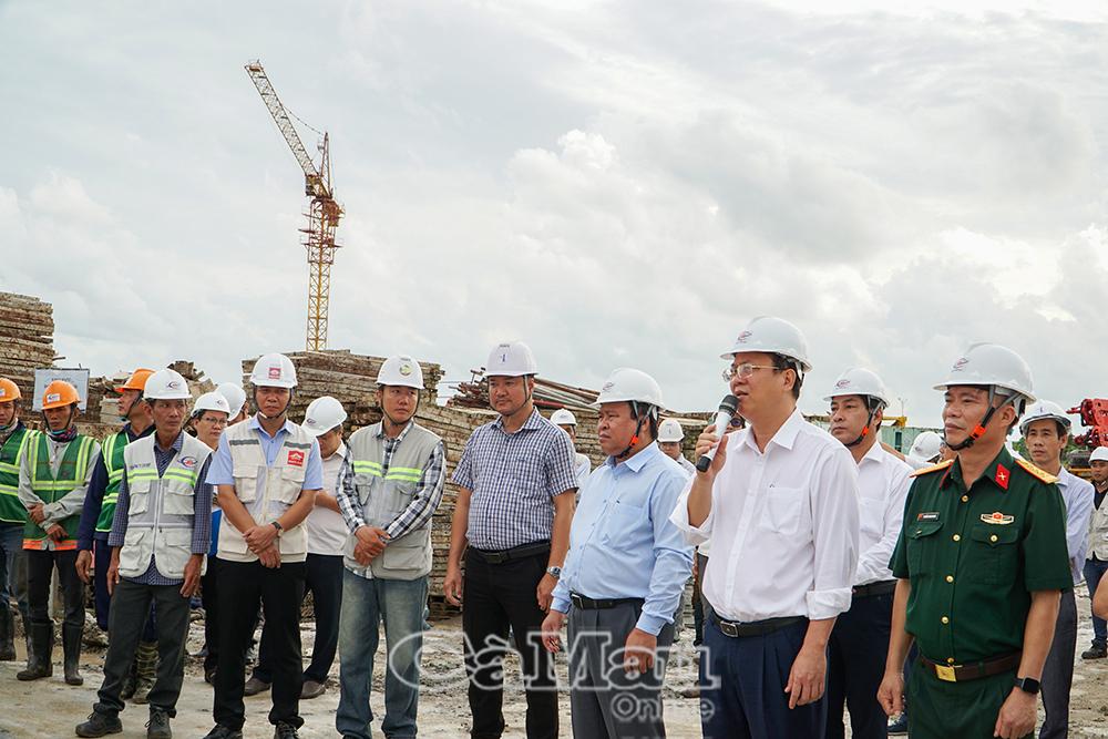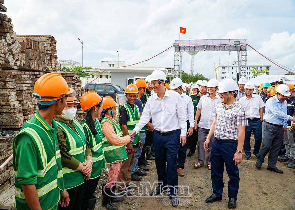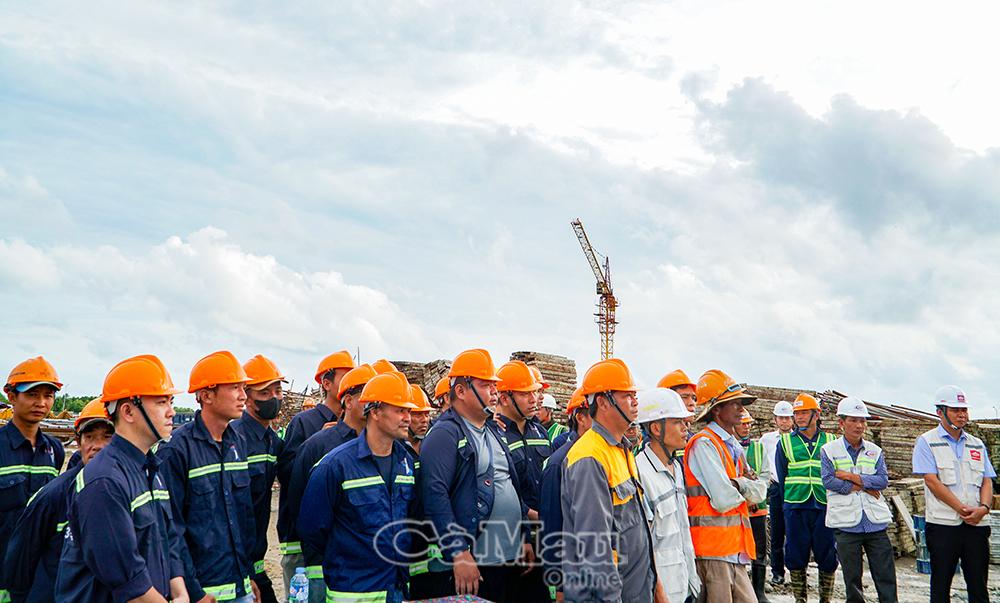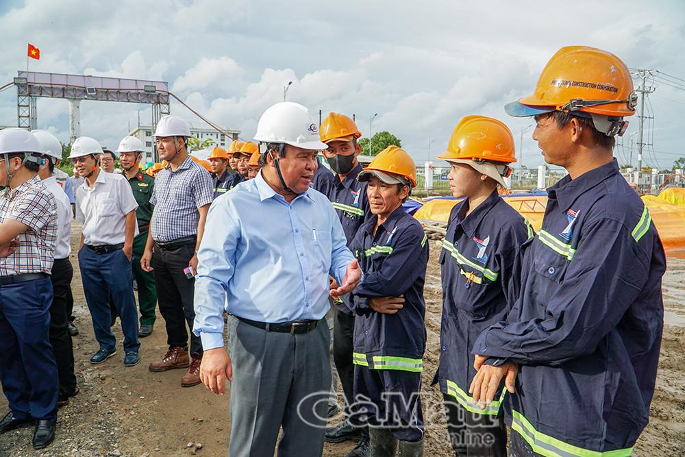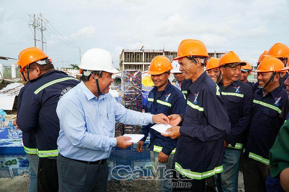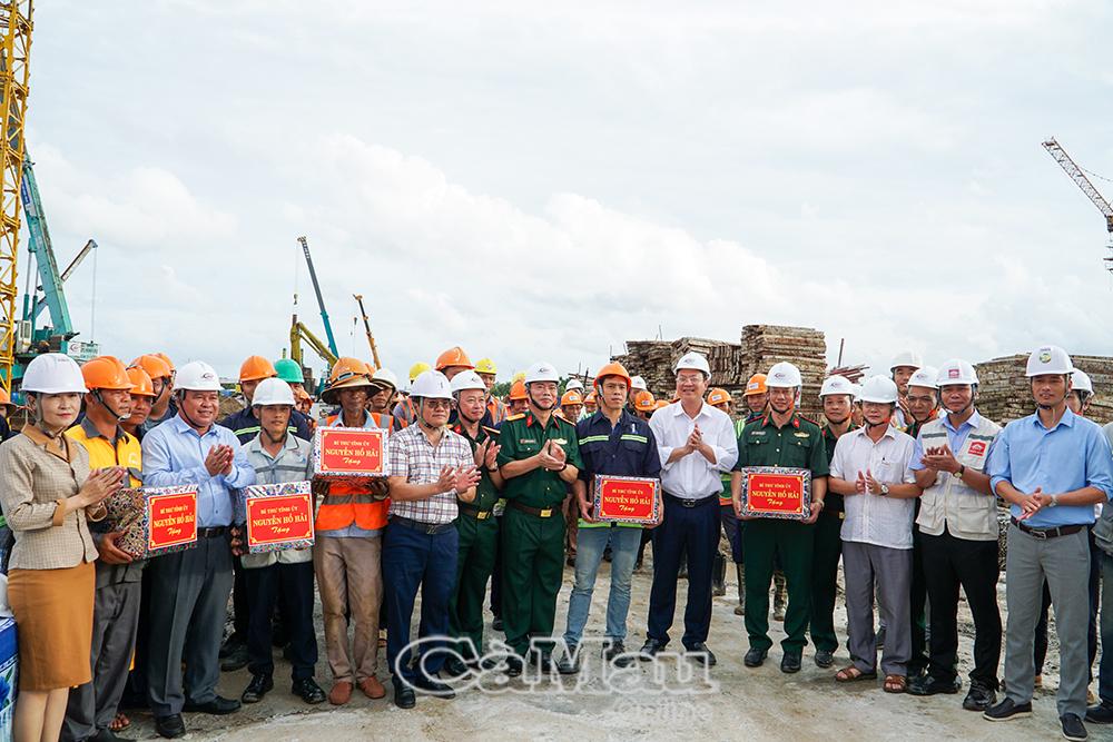 Chia sẻ với những khó khăn, vất vả của lực lượng thi công đang làm việc liên tục, không nghỉ lễ, phép, Bí thư Tỉnh uỷ cùng đoàn công tác đã trao tặng quà động viên, khích lệ tinh thần. Đồng chí lưu ý: “Phải đảm bảo tuyệt đối an toàn lao động trong thi công. Tỉnh Cà Mau luôn quan tâm sâu sát, hỗ trợ kịp thời với tinh thần quyết tâm nhất, cùng tháo gỡ mọi khó khăn để cùng với các bên liên quan thi công công trình đảm bảo chất lượng, tiến độ theo mục tiêu đề ra”.