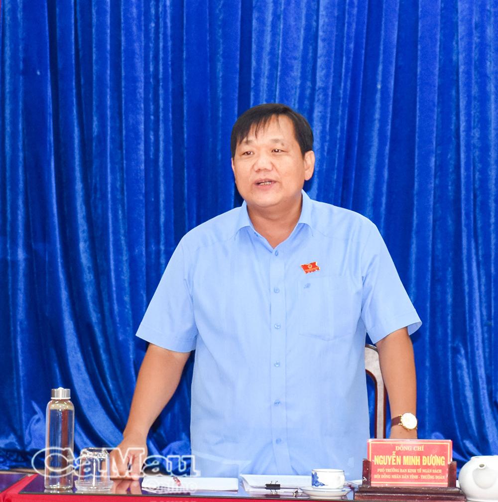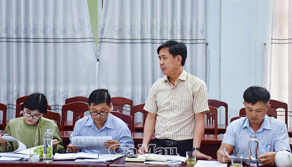 Ông Nguyễn Minh Đương, Phó Trưởng Ban Kinh tế - Ngân sách, HĐND tỉnh, phát biểu tại buổi làm việc với các xã tại trụ sở UBND xã Vĩnh Lợi.