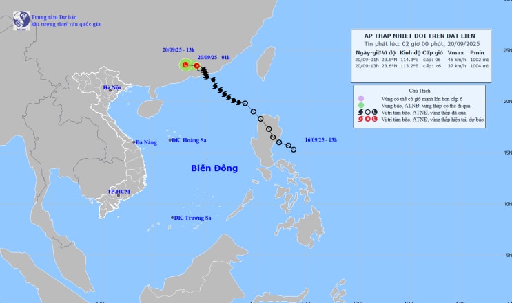 Dự báo trong 12 giờ tới, áp thấp nhiệt đới tiếp tục di chuyển theo hướng Tây Tây Bắc, tốc độ 10-15km/h, suy yếu dần thành một vùng áp thấp trên khu vực phía Nam tỉnh Quảng Đông (Trung Quốc) và không còn có khả năng ảnh hưởng trực tiếp đến Việt Nam.