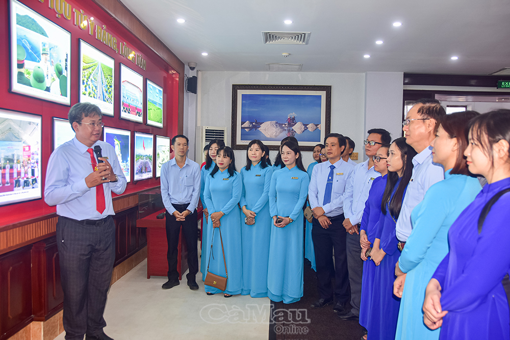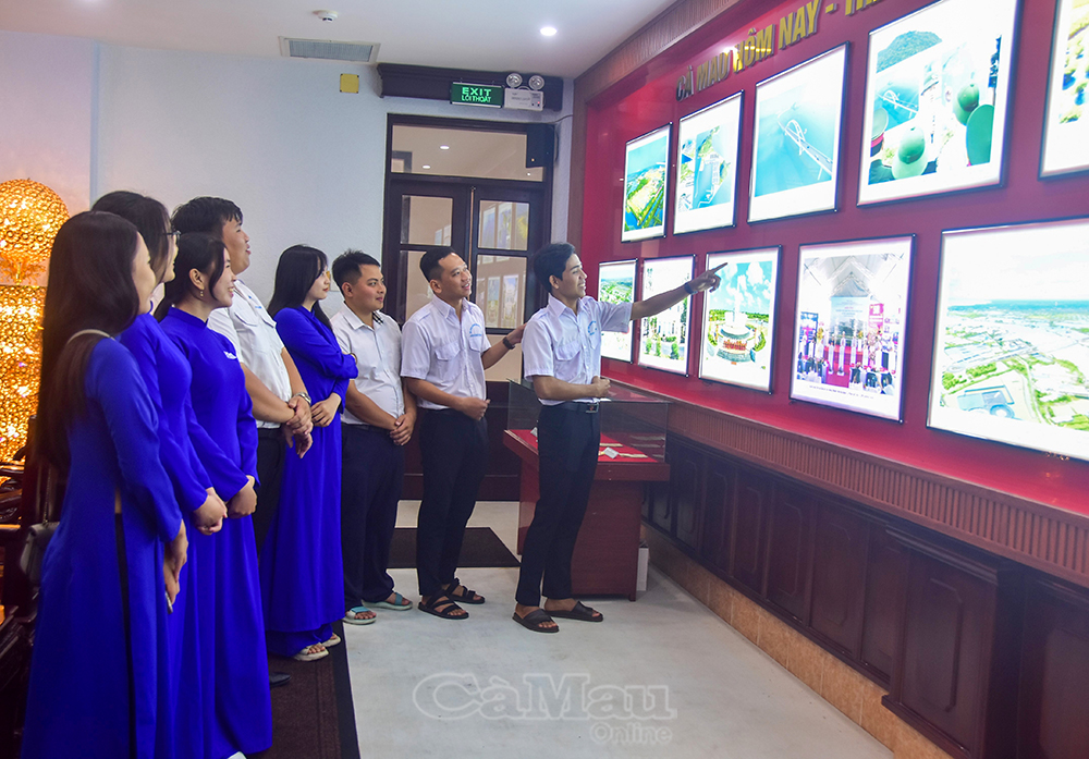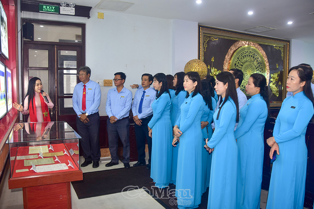 Trong không khí phấn khởi, tự hào hướng về Ngày thành lập Đảng, đoàn đã dâng hương tưởng niệm Chủ tịch Hồ Chí Minh, tham quan, nghe thuyết minh các tư liệu, hiện vật, hình ảnh được trưng bày theo hai chủ đề: “Đảng bộ tỉnh Cà Mau qua các thời kỳ” và “Cà Mau hôm nay - Thành tựu từ ý Đảng, lòng dân”.