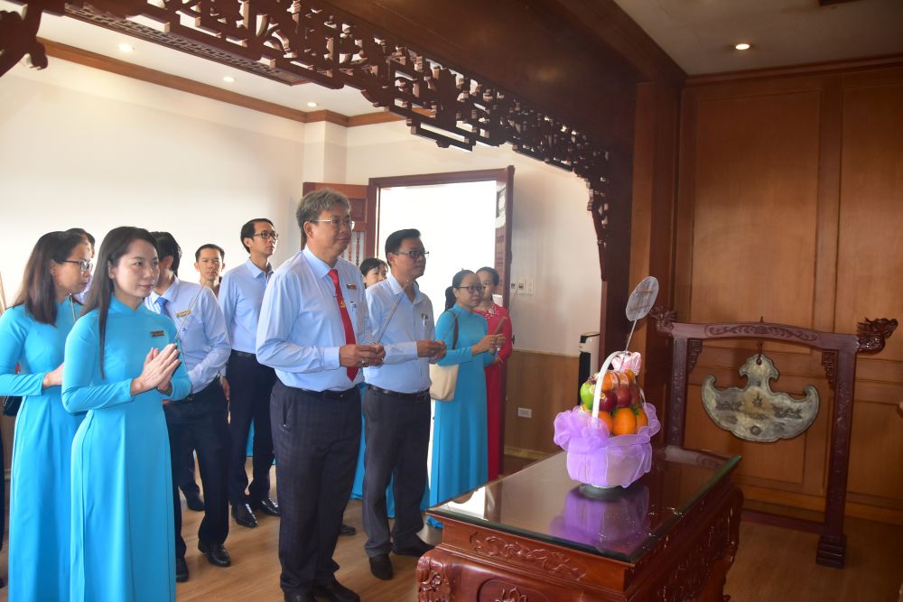 Đoàn cán bộ, giảng viên, sinh viên Trường Đại học Bạc Liêu thắp hương tưởng niệm Chủ tịch Hồ Chí Minh tại gian thờ Bác.