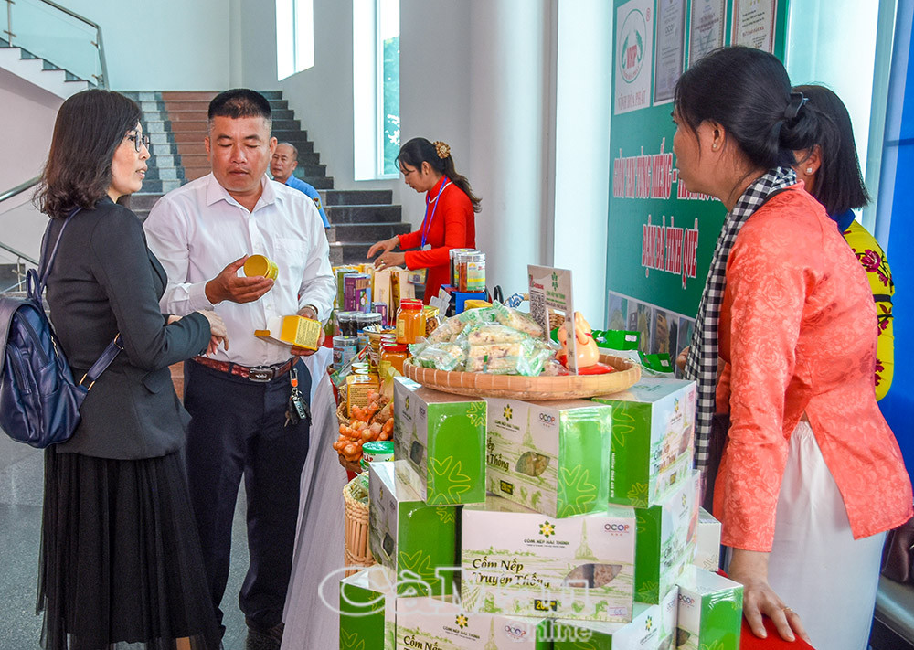 Không gian trưng bày sản phẩm nông nghiệp tiêu biểu của các tổ chức thành viên, các tổ hợp tác, bên lề đại hội.