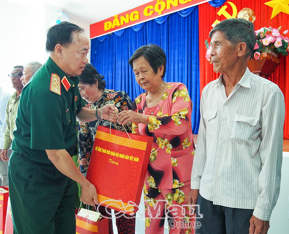 Thượng tướng Thái Đại Ngọc trao quà cho gia đình có công và hộ dân khó khăn.