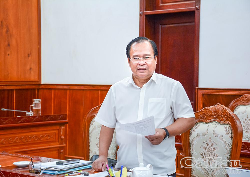 Phó Bí thư Thường trực Tỉnh uỷ Huỳnh Quốc Việt, Trưởng Ban Chỉ đạo phát biểu chỉ đạo tại cuộc họp.