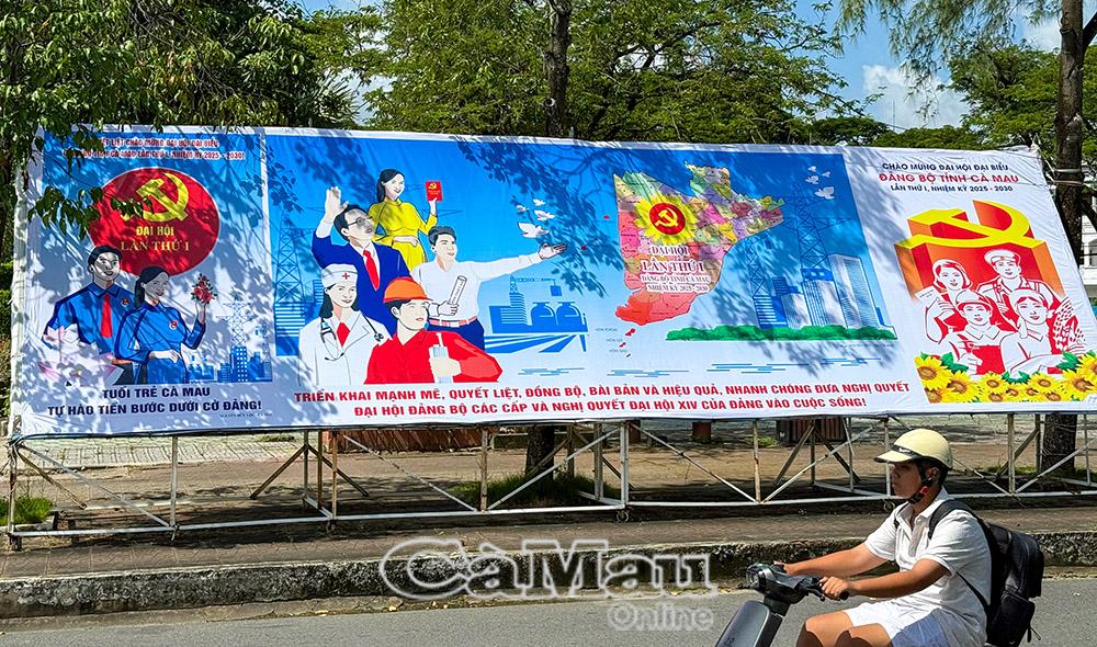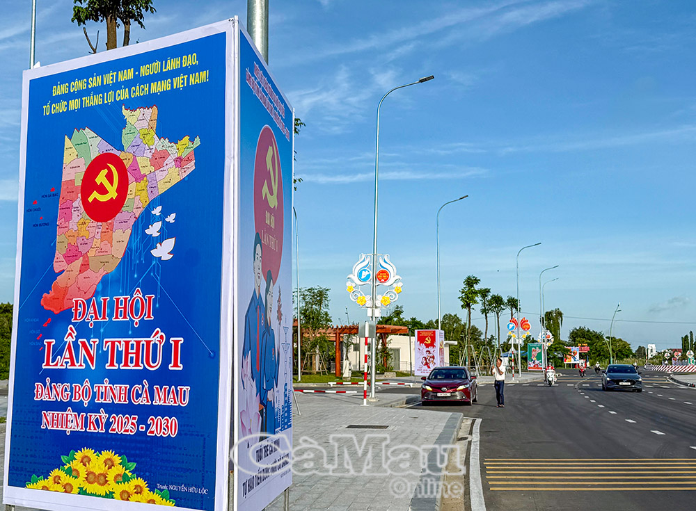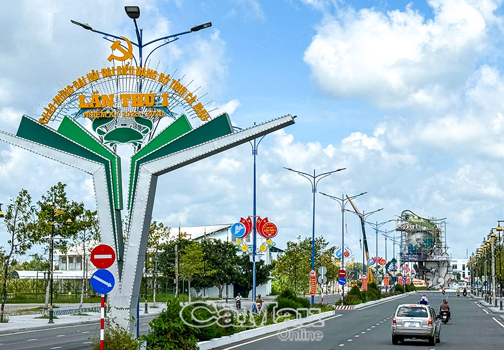 Đường phố Cà Mau khoác lên mình chiếc áo mới hướng về Đại hội Đảng bộ tỉnh.