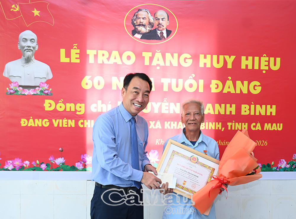 Sáng 27/1, đồng chí Lữ Quang Ngời, Phó Bí thư Tỉnh uỷ, Chủ tịch UBND tỉnh Cà Mau đã đến trao Huy hiệu Đảng nhân kỷ niệm 96 năm Ngày thành lập Đảng Cộng sản Việt Nam (3/2/1930-3/2/2026) tại xã Khánh Hưng và Khánh Bình.