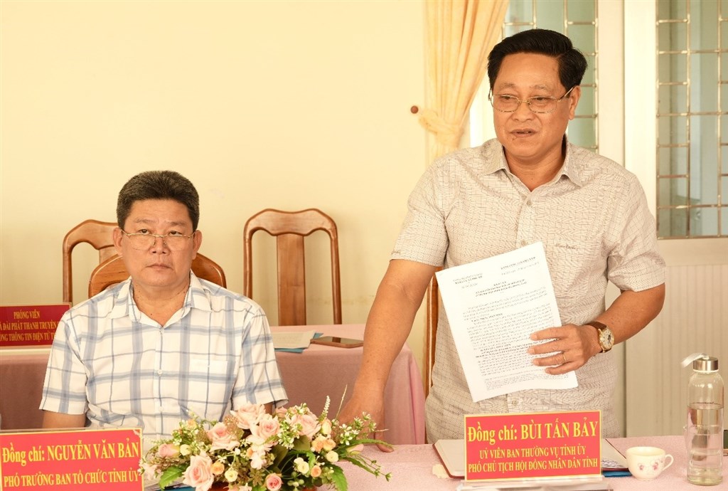Phó Chủ tịch HĐND tỉnh Bùi Tấn Bảy trao đổi tại buổi làm việc.